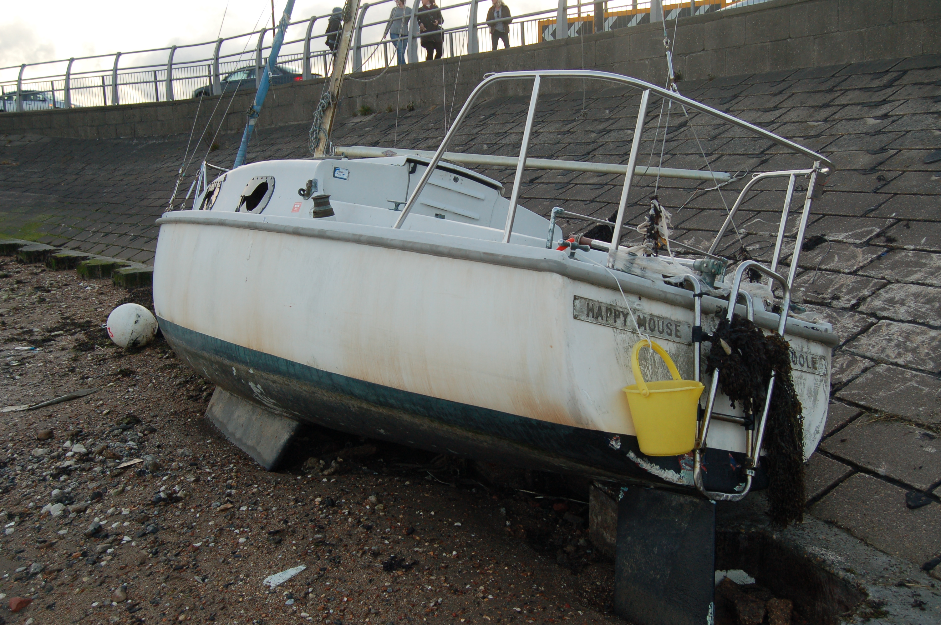 View from the stern port quarter - again almost looks normal bar the broken windows and boarding ladder.